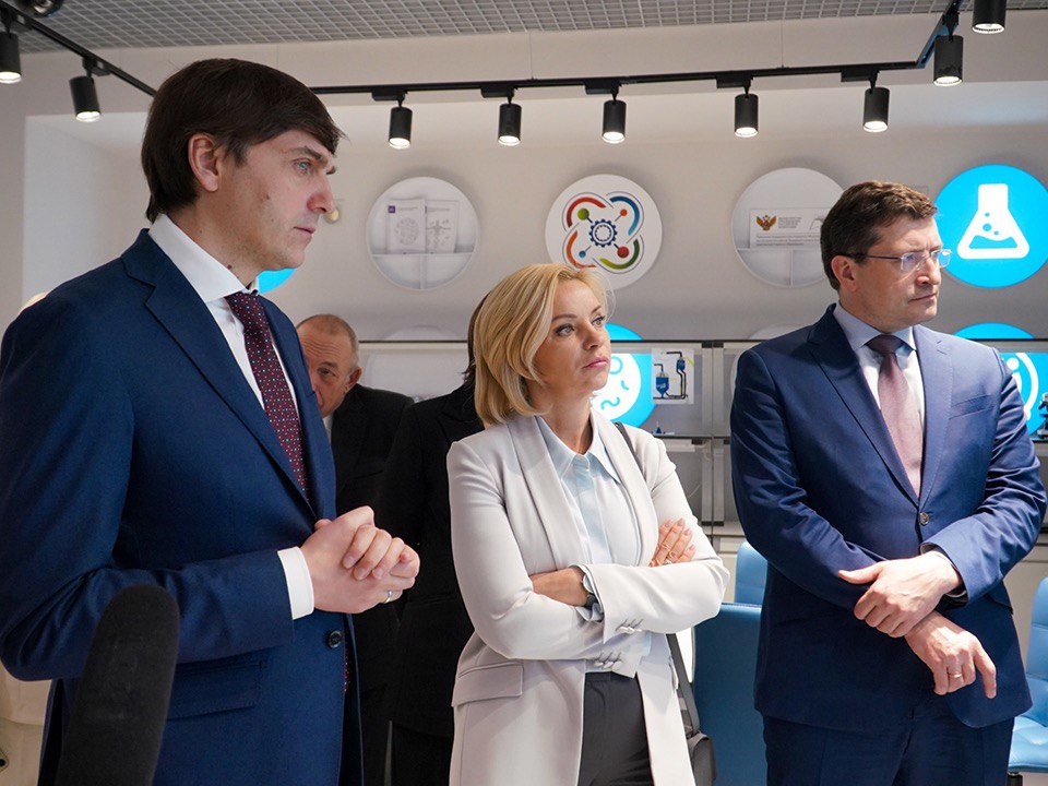 Министр просвещения России Сергей Кравцов и губернатор Нижегородской области Глеб Никитин посетили Межфакультетский технопарк универсальных педагогических компетенций, созданный на базе НГПУ имени Козьмы Минина