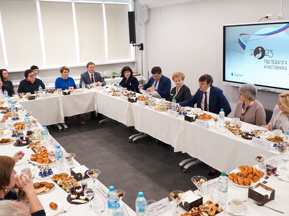 Глава Минпросвещения и губернатор Нижегородской области также встретились с ветеранами педагогического труда и обсудили возможности повышения статуса педагога и популяризации профессии учителя.